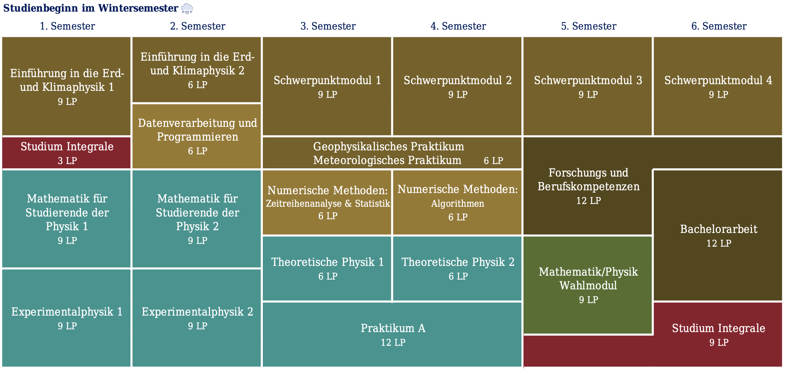 The System Earthand the System Atmosphere are closely linked (for example via the oceans and the high atmosphere/ionosphere). The Earth and Climate Physics degree program provides the necessary basics for both systems, but offers students the opportunity to choose a focus (geophysics or meteorology).